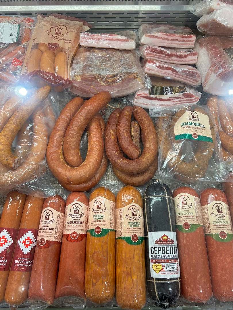 колбасы и мясные деликатесы;